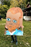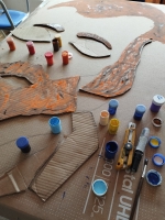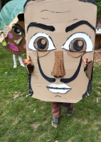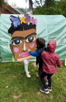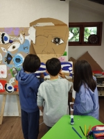 Trabajando en la elaboración de unas máscaras gigantes con cartón REUTILIZADO. Este trabajo terminó el pasado viernes 01 de diciembre con una mini obra, en dónde el corpóreo de FridaKahlo, Salvador Dalí y Pablo Picasso se reunieron en "el café de Fleur" a conversar sobre una exposición, mientras Vincent Van Gogh a lo lejos pinta un autorretrato.